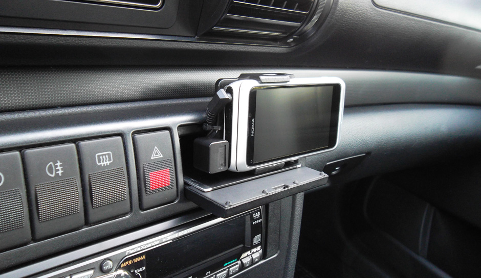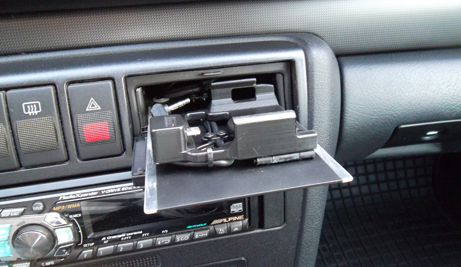 baute ich mir eine Handyhalterung fürs Auto. Dies war gar nicht so leicht, weil ich die Halterung verstecken wollte, wenn ich sie nicht brauche.