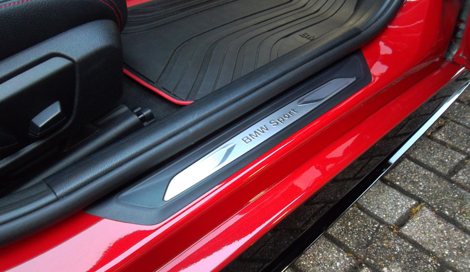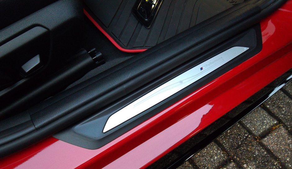 noch die Einstiegsleisten. Diese waren bisher nicht beleuchtet. Mittlerweile wurde sehr viel von Serie auf BMW M Performance außen am Auto umgebaut.
