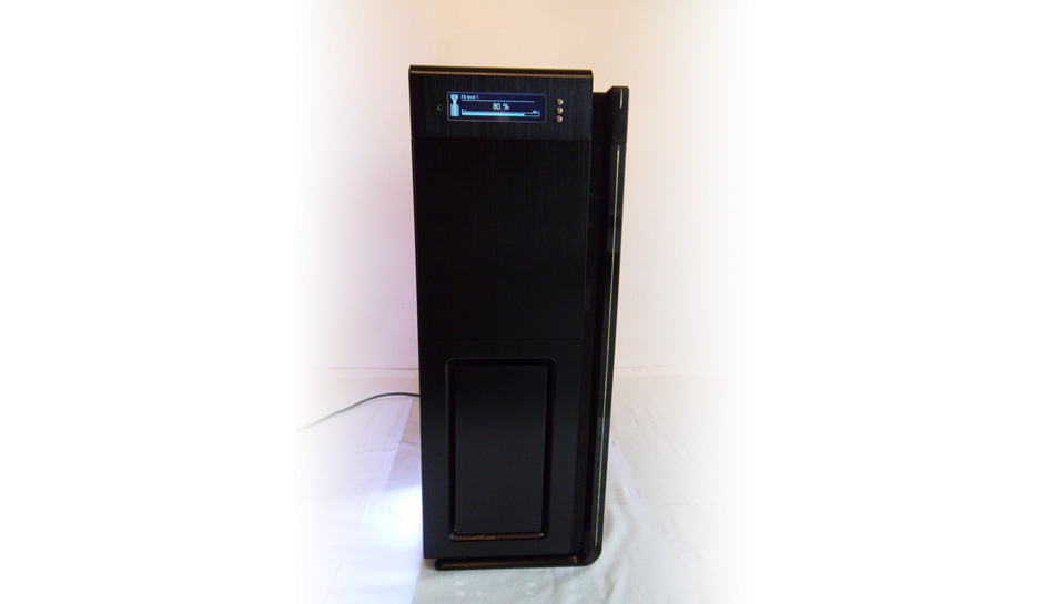 dargestellt. Der fertige Computer bringt ein Gewicht von über 40 kg auf die Waage. Das Gewicht setzt sich zusammen aus der Pumpenbox aus massiven Holz,