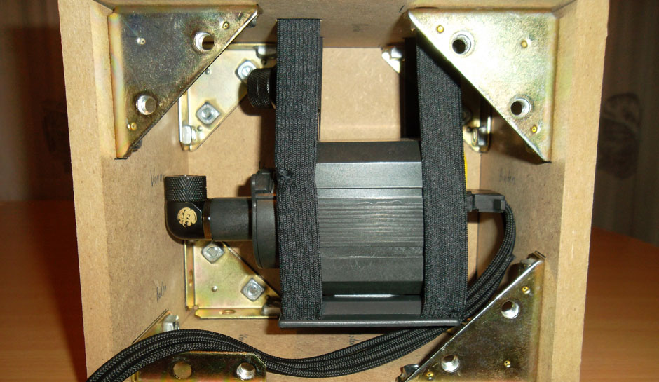 zuhören waren. Deswegen besteht die neue Box aus doppelten Wänden und die Pumpe steht nicht auf den Boden mit Schaumstoff, sondern