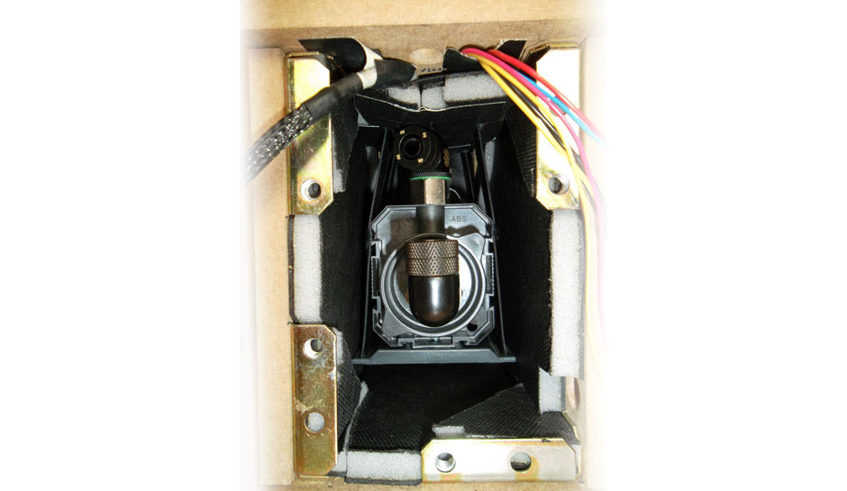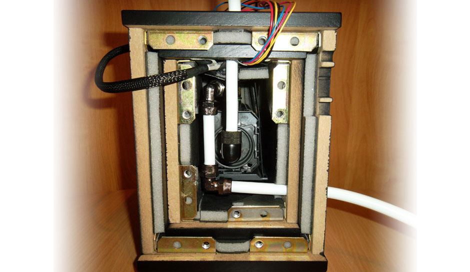 hängt an Gummibändern. Auch die Schläuche zur Pumpe sind so gelegt, dass sie so gut wie keine Vibrationen übertragen.